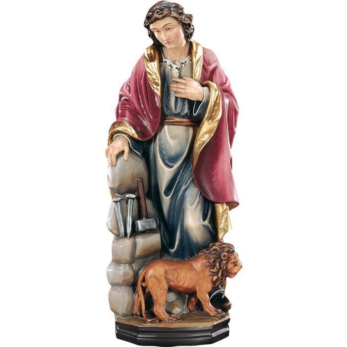Das einzigartige Design verbindet kunstvolle Handwerkskunst mit bedeutungsvoller Symbolik: Der Hl. Daniel trägt ein langes Gewand und einen roten Umhang, seine rechte Hand ruht auf einem Steinblock mit Werkzeugen, die auf seine Fähigkeiten und Weisheit hinweisen. Die linke Hand liegt auf seiner Brust und unterstreicht seine spirituelle Verbundenheit. Diese detailreiche Holzfigur ist ein wertvolles Sammlerstück und gleichzeitig ein kraftvoller Begleiter im Alltag.