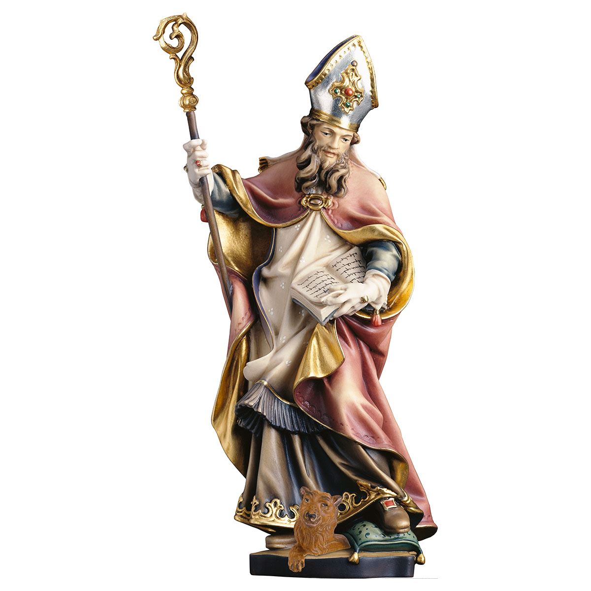 Heiliger Korbinian mit Bär sehr kunstvoll und detailreich als Bischofsfigur aus Ahorn oder Lindenholz geschnitzt. Sie können die verschiedenen Oberflächen Ausführungen der Figur sowie die Größen auswählen. Diese Holzfigur ist kurzfristig lieferbar.