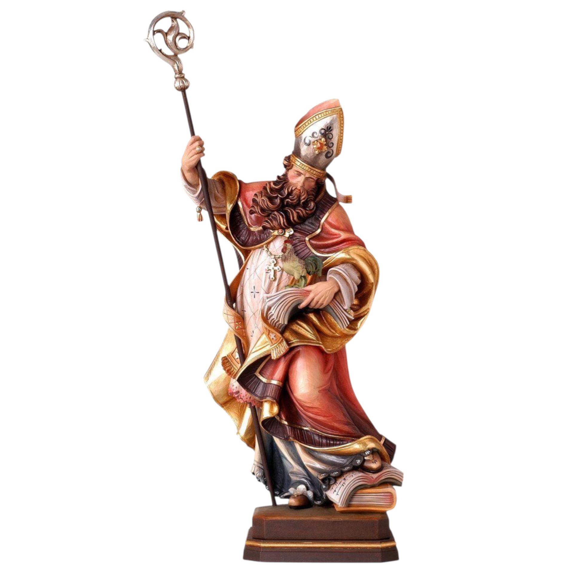 Heiliger Valentin mit Hahn sehr kunstvoll und detailreich als Bischofsfigur aus Ahorn oder Lindenholz geschnitzt. Sie können die verschiedenen Oberflächen Ausführungen der Figur sowie die Größen auswählen. Diese Holzfigur ist kurzfristig lieferbar.