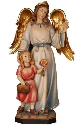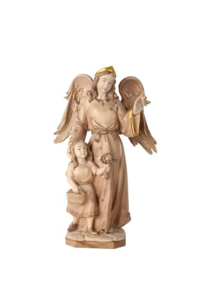Schutzengel mit Mädchen aus Ahornholz geschnitzt und in der Ausführung Color mit Ölfarben handbemalt