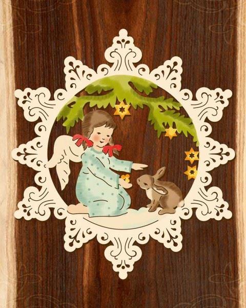 Holz-Behang "Engel im Wald" - klassisch coloriert
