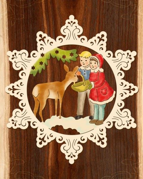 Holz-Behang "Rehfütterung" - klassische Farbg.