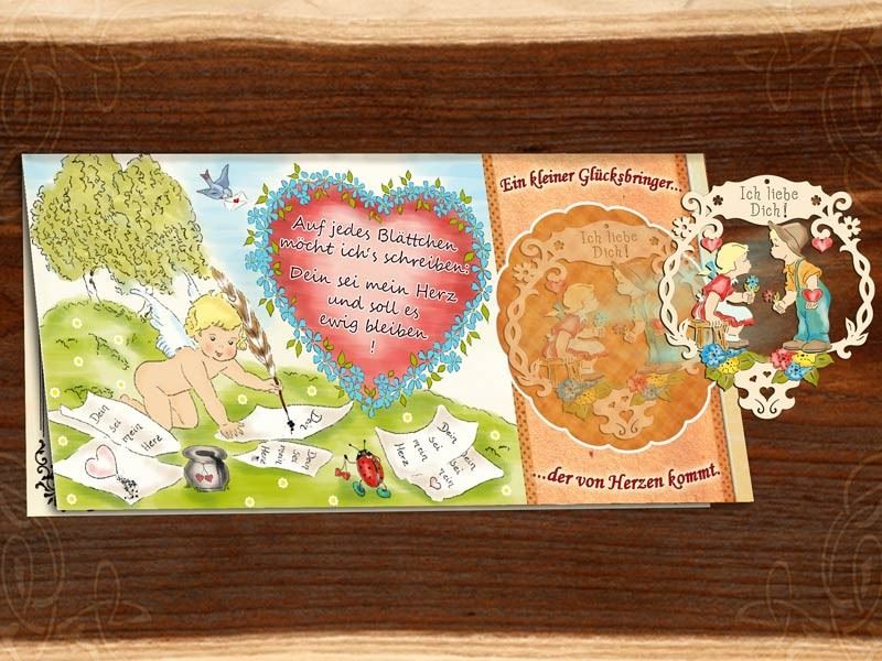 Glückwunsch-Karte "Liebe" m. Holzbehang
