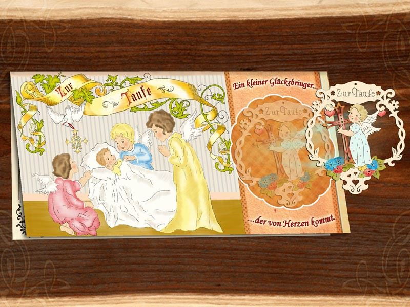 Glückwunsch-Karte "Zur Taufe" m. Holzbehang