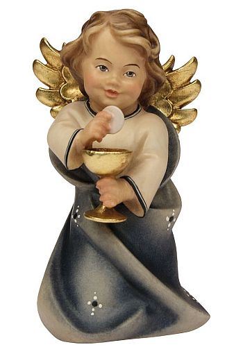 Der Holzengelmit Kelch und Hostie ist mit roten Gewand oder mit blauen Gewand lieferbar.