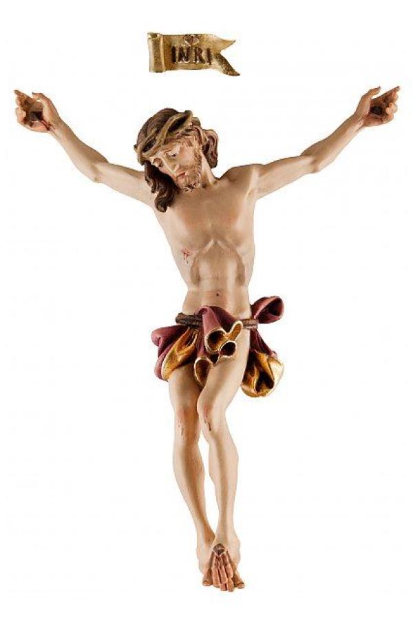 Entdecken Sie die exquisite Schönheit unseres barocken Christus mit dem INRI-Schild, meisterhaft geschnitzt und ein wahres Kunstwerk. Dieser Christuskörper kann auf elegante Weise mithilfe eines unsichtbaren Holzdübels befestigt werden, um die Ästhetik nicht zu stören. Beachten Sie bitte, dass eine Befestigung an den Armen vermieden werden sollte, da dies zu unschönen Rissen führen könnte.