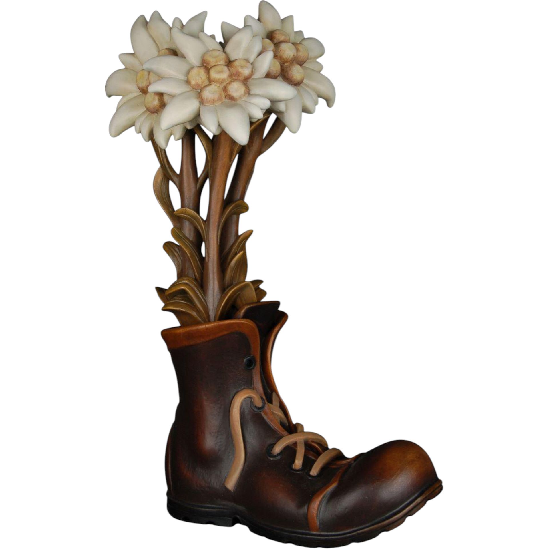 Edelweißstrauß mit Schuh aus Ahornholz geschnitzt und in der Ausführung Color mit Ölfarben handbemalt