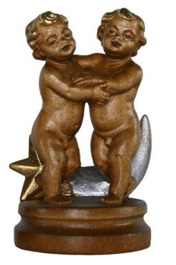 Sternzeichen Zwillinge aus Ahornholz geschnitzt und in der Ausführung Color mit Ölfarben handbemalt. Ausdrucksstarke Holzschnitzerei in bester Qualität. Der Zwilling und seine Charaktereigenschaften im Überblick Der typische Zwilling ist anpassungsfähig, betriebsam, beweglich, charmant, flexibel, fröhlich, freundlich, gesellig, heiter, immer unterwegs, intelligent, jugendlich, kommunikativ, kontaktfreudig, kreativ, lebhaft, neugierig, objektiv, offen, sachlich, schnell, tolerant, überzeugend, vielseitig, vorurteilslos, wendig und wissbegierig. Schwächen: beeinflussbar, distanziert, flatterhaft, leichtfertig, nervös, oberflächlich, ruhelos, selbstgefällig, stressanfällig, unehrlich, ungeduldig, unzuverlässig, weitschweifig und zerstreut. Lebensmotto: Ich denke! Ich weiss! Ich kommuniziere!