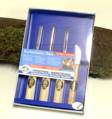 Kirschen Kerbschnitzbeitel-Satz, Buchenheft 4-tlg.